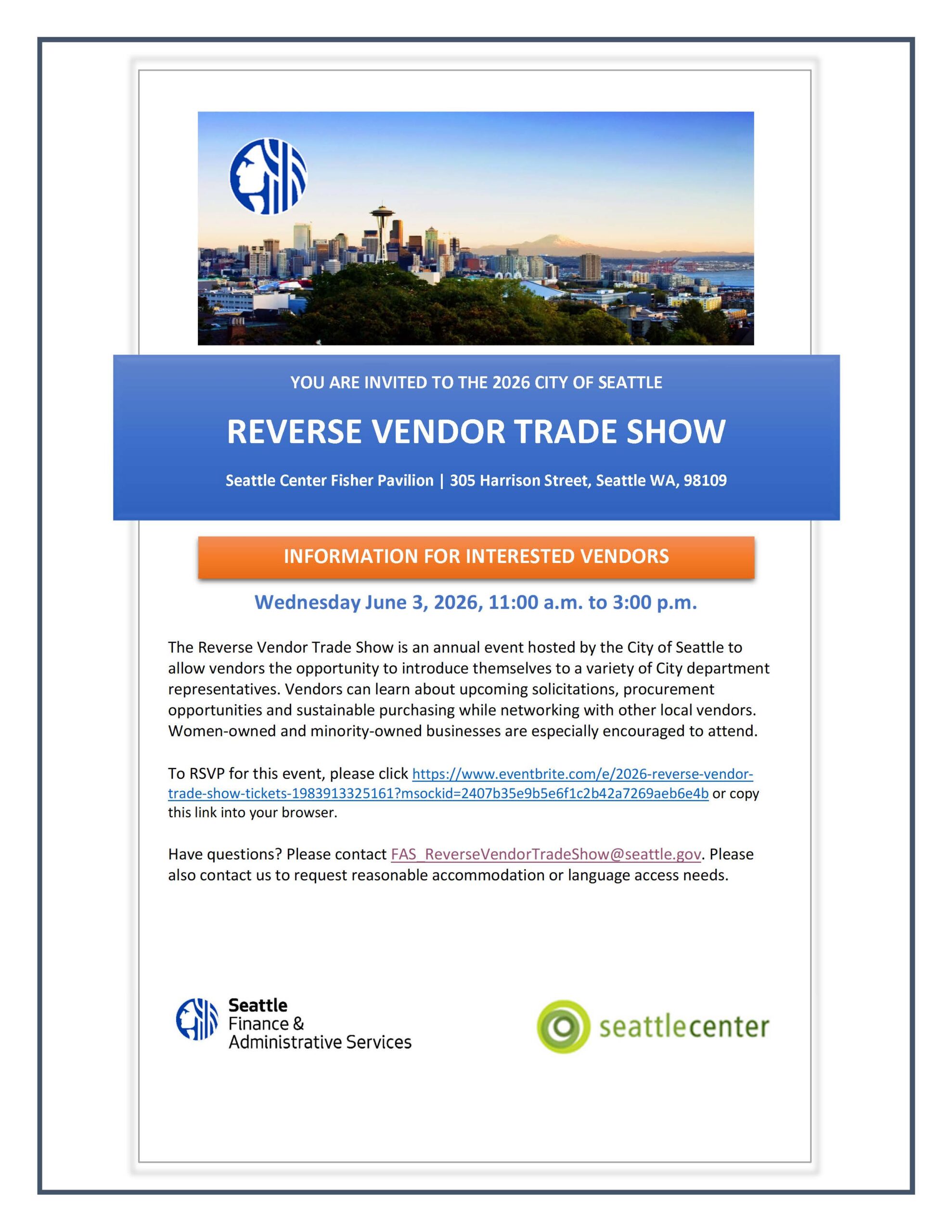 Original Date Posted: April 1, 2026 12:26 pmWednesday June 3, 2026, 11:00 a.m. to 3:00 p.m. Seattle Center Fisher Pavilion | 305 Harrison Street, Seattle WA, 98109